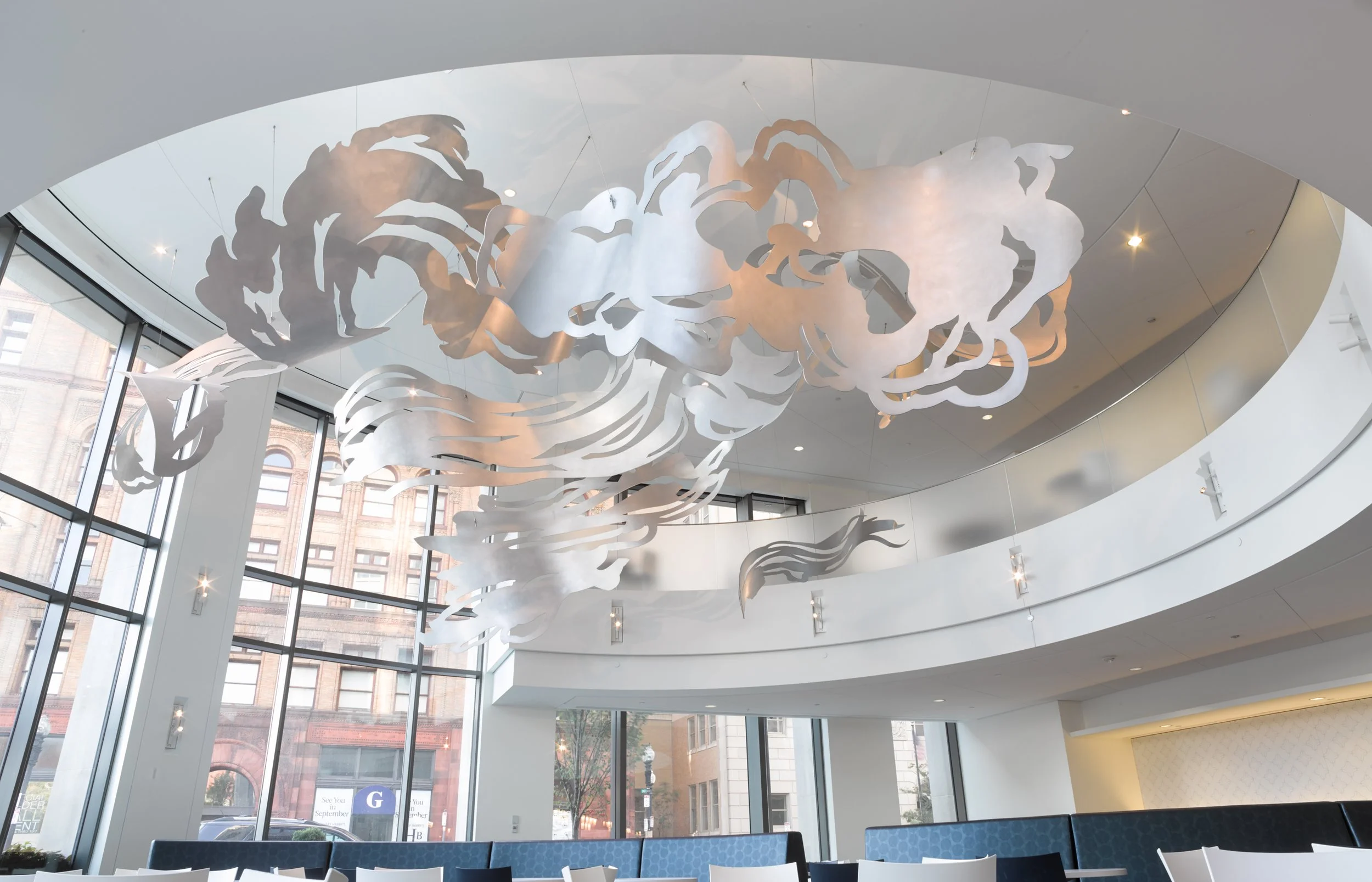 Since 2013, Pearlman has created permanent site specific public commissions for clients including Liberty Mutual Insurance, MGM, MTA Arts & Design, Baptist Health and Zhongshan Huafa Plaza, with budgets ranging from $175,000 to $1.2M. She has been a finalist for many projects from $350,000 to $2M for NYU Langone Hospital, Phoenix Sky Harbor Airport, Oxford Properties, and many others.