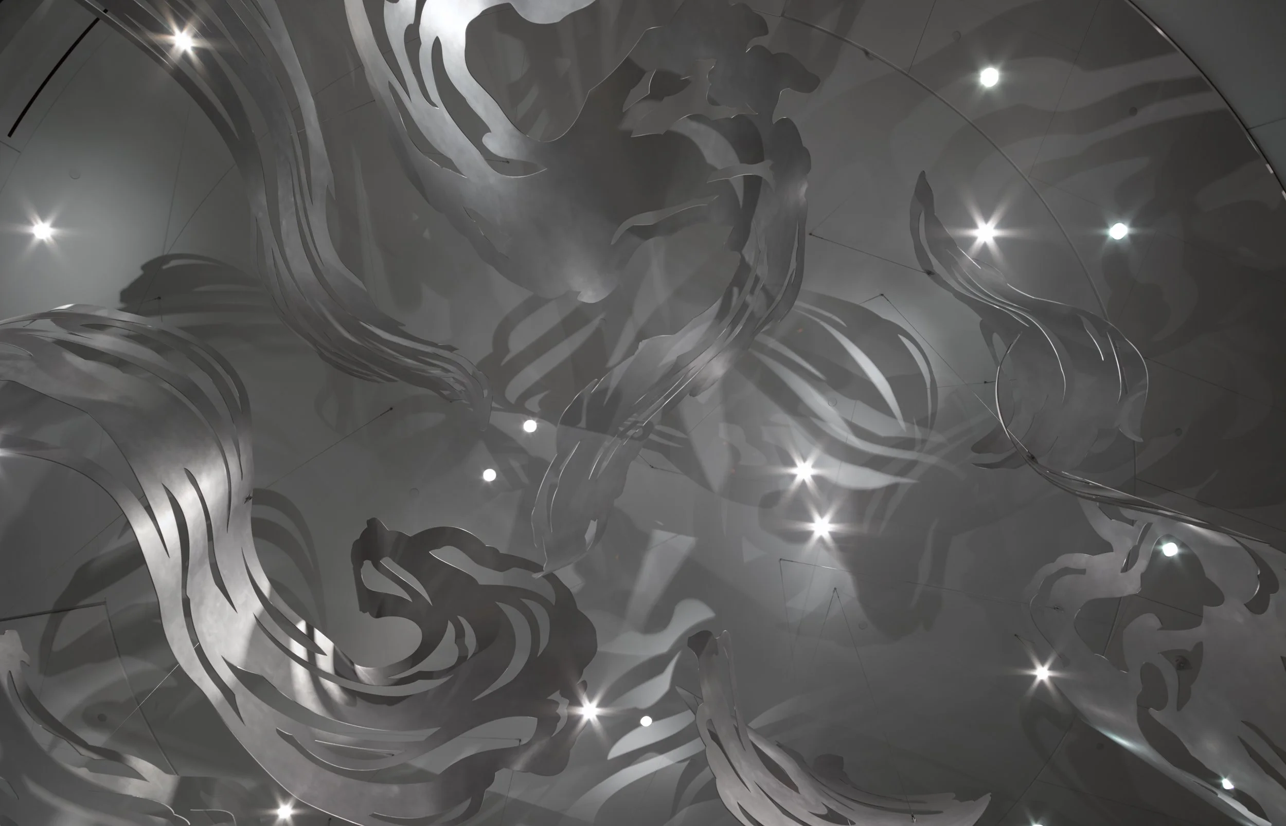 This body of work grew out of an unrealized suspended sculpture commission for a San Diego biotech building, which would have been fabricated from UV printed aluminum in colors evoking the nearby Pacific. The project was shelved, but Pearlman was freed to translate that more restrained vision into turbulent wall sculptures responding to garbage gyres in the earth's oceans.
